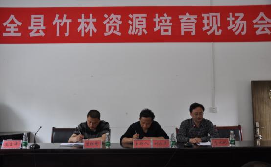 会议由县政府办副主任刘亦虎主持,会上县林业局局长肖文武作了题为"楠竹生产,大有可为"的主题报告,鸬鹚渡镇、马迹塘镇分别就竹林道建设和笋用林培育做了经验介绍。刘亦虎副主任受李畅和副县长的委托提出了五点具体要求:一是要充分认识我县竹资源优势,变资源优势为财源优势;二是要加大基础实施建设的投入,变高成本为高效益;三是创新竹产业发展的方式,变高污染、高能耗为生态、环保型产业;四是要强化办点示范和指导服务,变被动发展为主动发展;五是要狠抓落实,确保高效生态林业和林改扫尾工作任务完成。